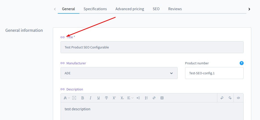 In the admin interface, such fields are marked with a link icon, indicating that inheritance is active.