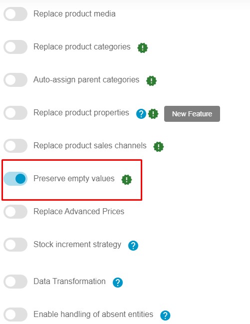By combining “Preserve empty values” with the __EMPTY__VALUE__ placeholder, you can precisely control whether a variant uses its own value or inherits data from its parent product — fully aligned with Shopware 6’s native inheritance model.