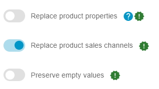 - Preserve Existing — Existing sales channel assignments remain unchanged.